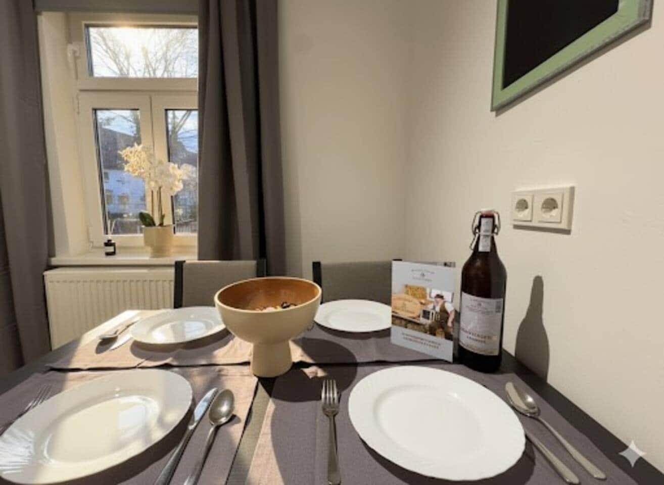 Hier gibt es einen Esstisch für 4 Personen.